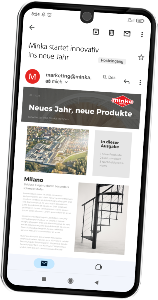 For more information about Minka and our products, feel free to take a look into our brochure. For an overview of our entire product range, you can download our price list. More detailed information about our products can be found in our online shop.