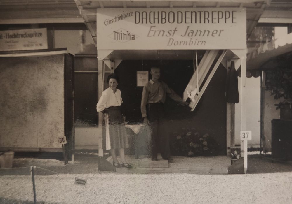 In the years following the founding of the company, production and sales were exclusively in the hands of the Janner family. Ernst Janner senior took over the management, but his wife Rosa Janner and their son Franz Janner also put all their heart and soul into the manual production of their loft ladders. As a result, the products quickly found favour with the house builders in Austria. Soon the facilities in Vorarlberg were too small for the company and the Janner family had to move the business to another location. The choice fell on a centrally located place in Styria and in 1956 Minka finally opened its doors in St. Lorenzen im Mürztal.