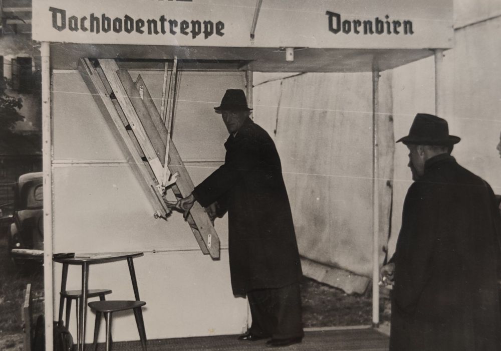 The history of Minka began in the 1950s, when the young Franz Janner built his first attic staircase. Initially only intended for his own use, this soon developed into a business idea. Franz Janner worked constantly on improving his product and so his father Ernst Janner Sr. was finally able to register a patent for various functions of the attic staircase on 2 November 1951. Based on this, father and son officially founded a company in 1952 – inspiration for the company name “Minka” was provided by the family’s cat, who also enjoyed the attic staircase at home.