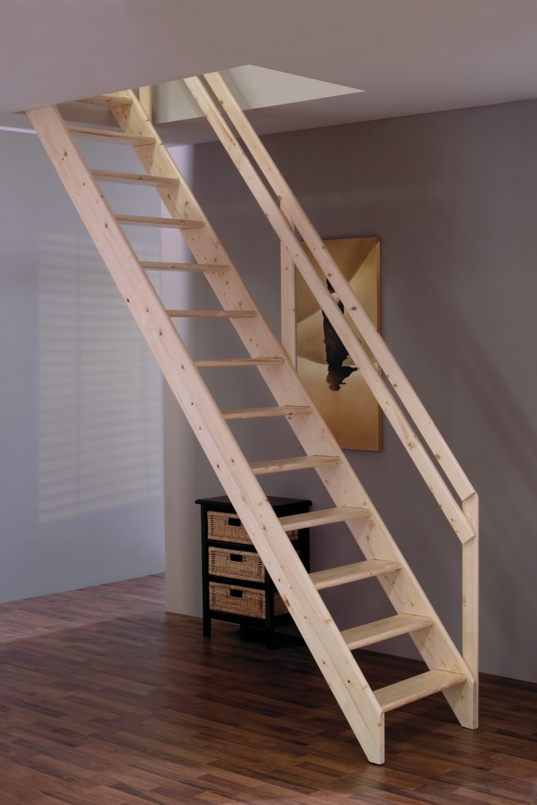 The staircase Boras convinces not only with its functionality, but also with its beautiful appearance. It is made of solid spruce wood, which is not varnished for a natural look. This makes it easy for DIY enthusiasts to try their hand at wood painting, varnishing and staining.