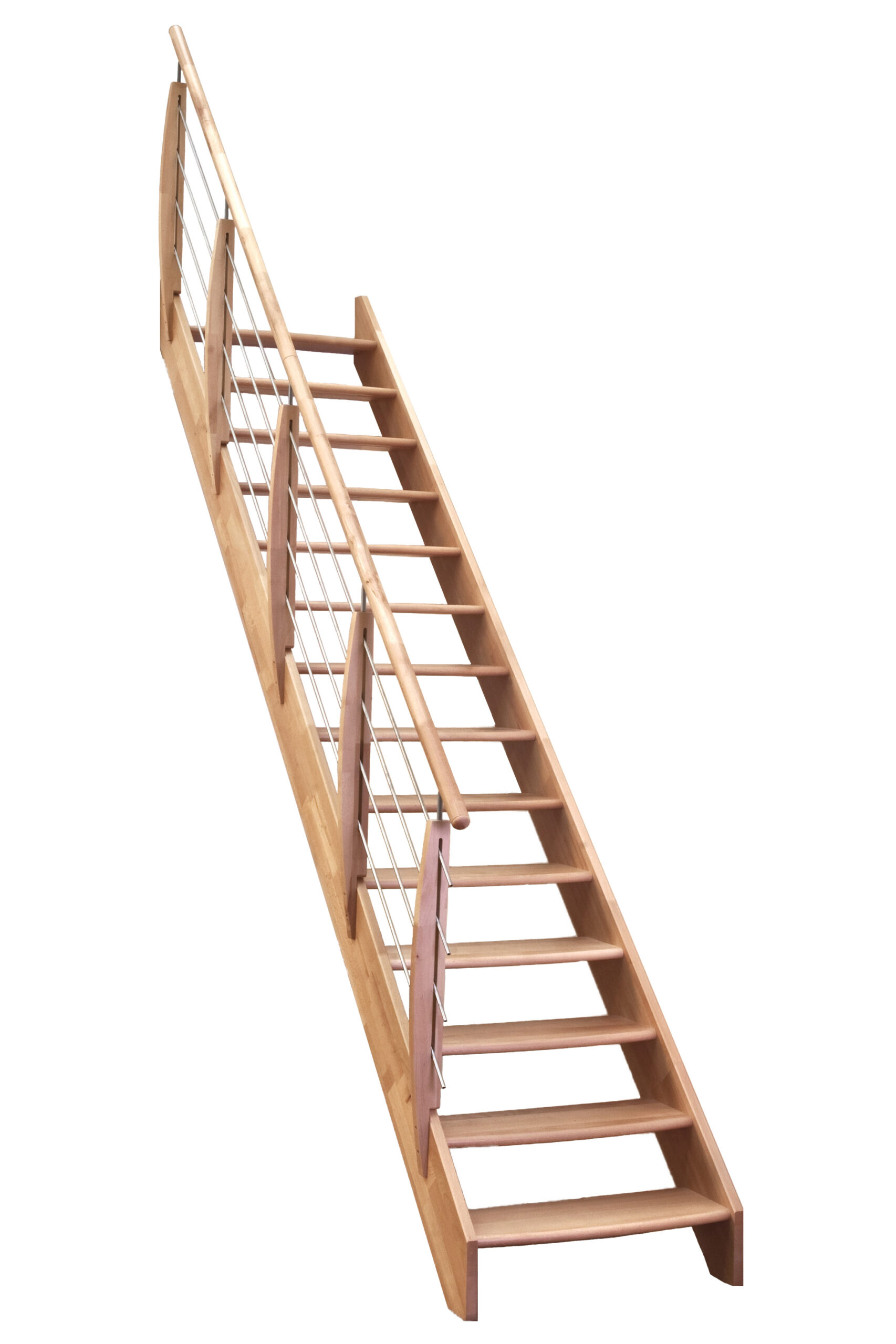 The Classic space-saving staircase is characterised by a stable structure made of solid wood. With its three centimetre thick steps, it ensures a pleasant ascent to the next floor. Especially the hardwood beech is extremely resistant to wear and tear and other damage.