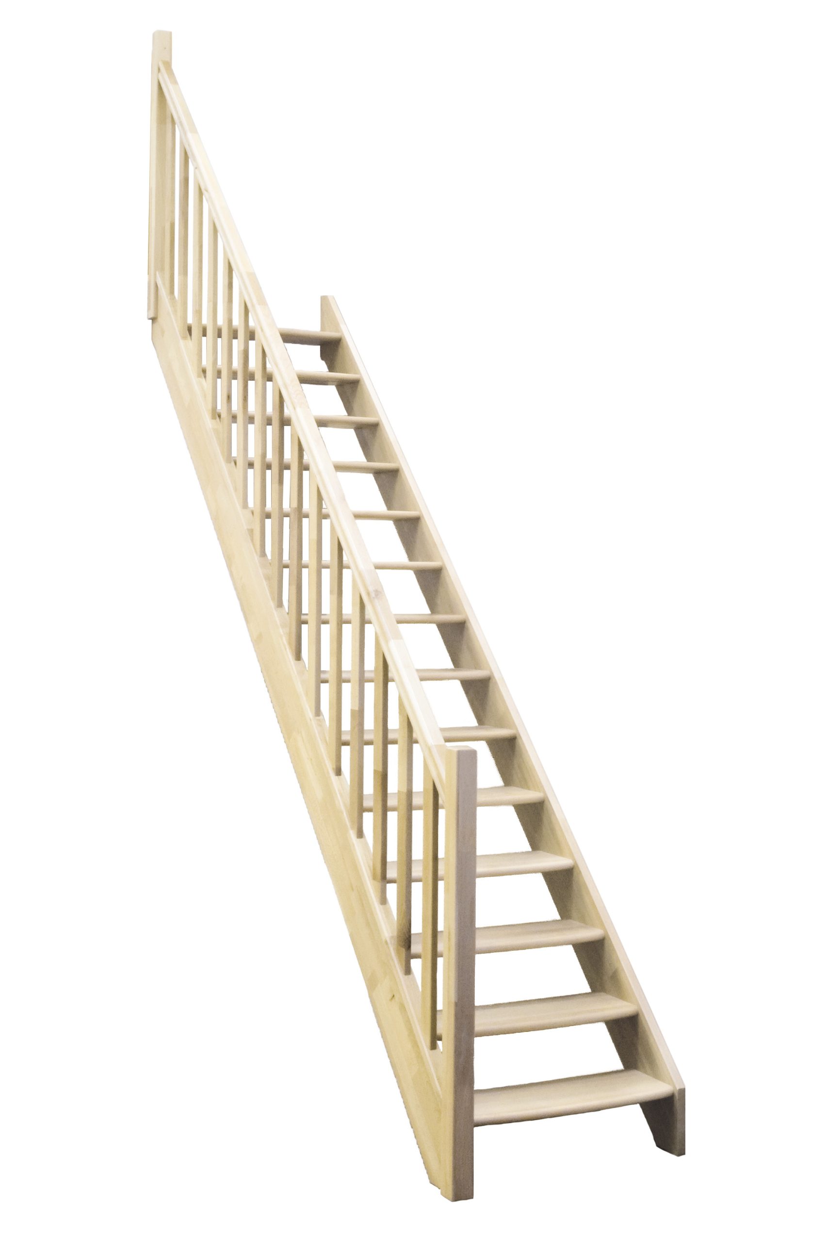 The simple wooden staircase Classic fits perfectly into houses with cottage style or Scandinavian interior style. However, it is not only a visual highlight, but also very stable and robust thanks to its solid wood construction.