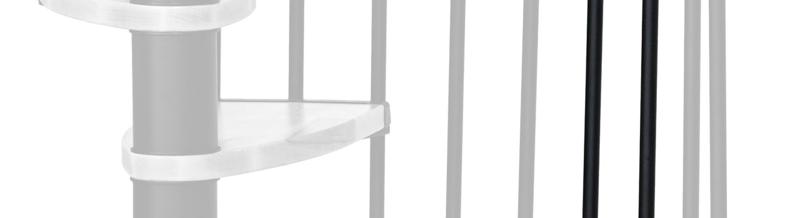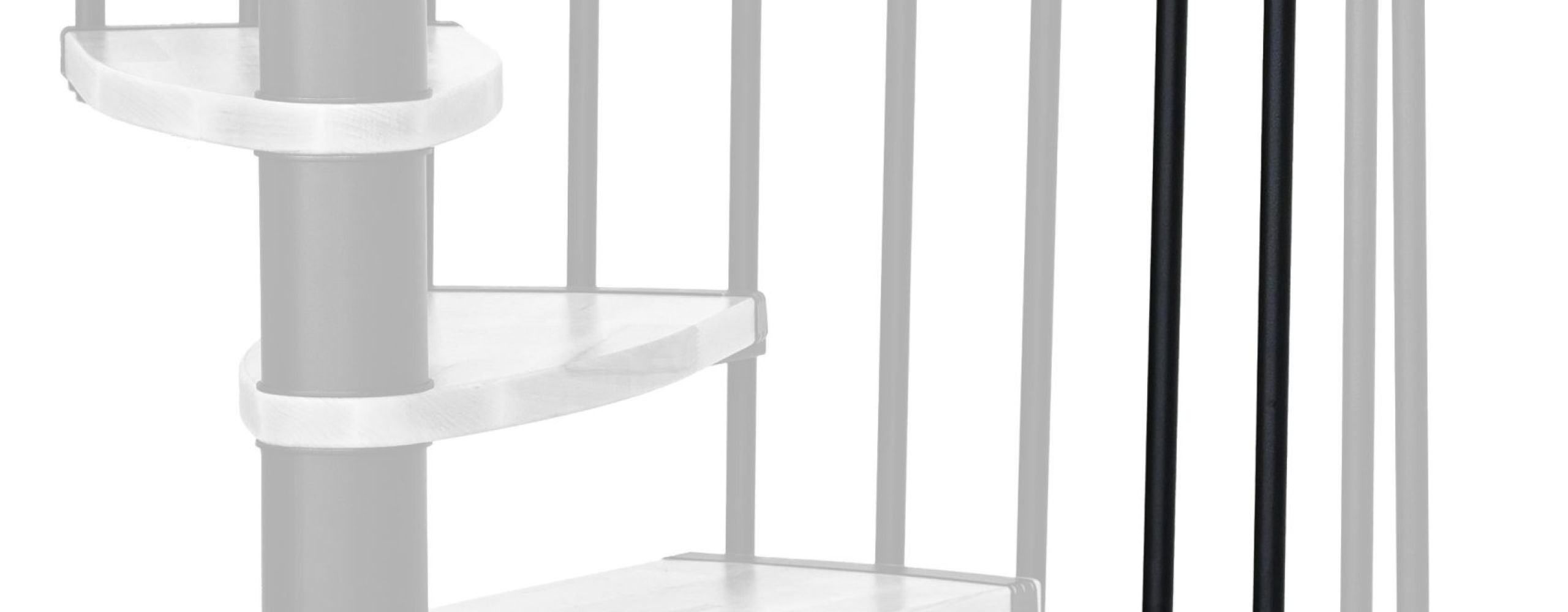 The additional step for the spiral staircase Luna includes a shortenable step, balusters and the appropriate assembly material. The metal parts are available in black, grey and white. When purchasing, please ensure that the height extension has the same configuration as your staircase.