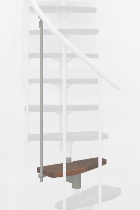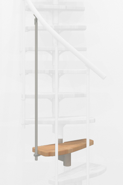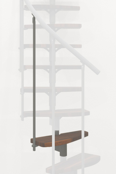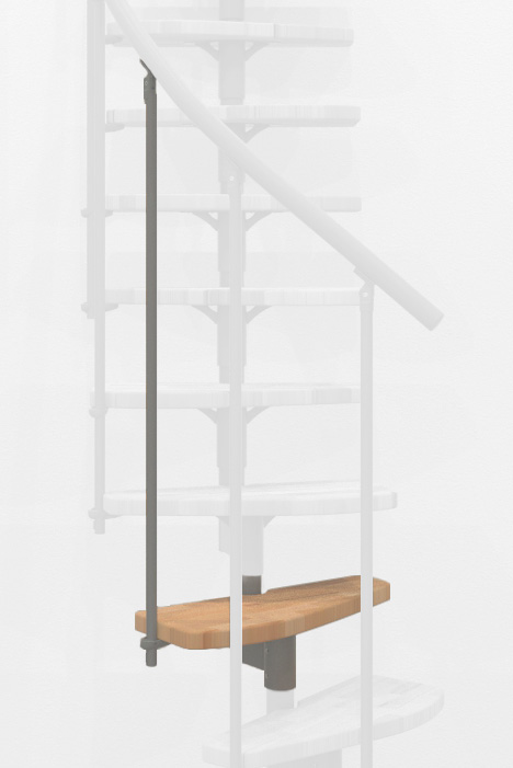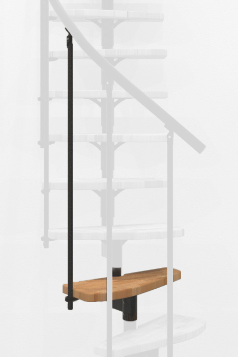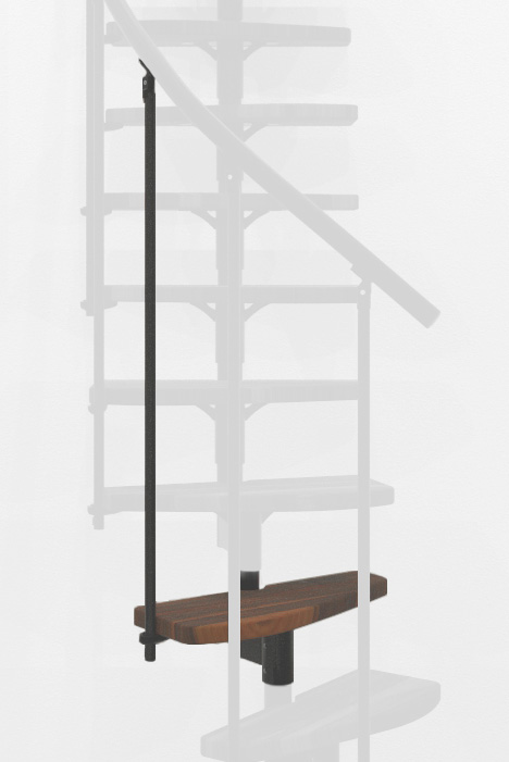 The height extension for the space-saving staircase Monte Carlo consists of an additional step, a baluster and the appropriate installation material. The step is available in a walnut or beech finish to match the staircase and the metal parts are powder-coated in black, grey or white. When purchasing, please ensure that the height extension has the same configuration as your staircase.