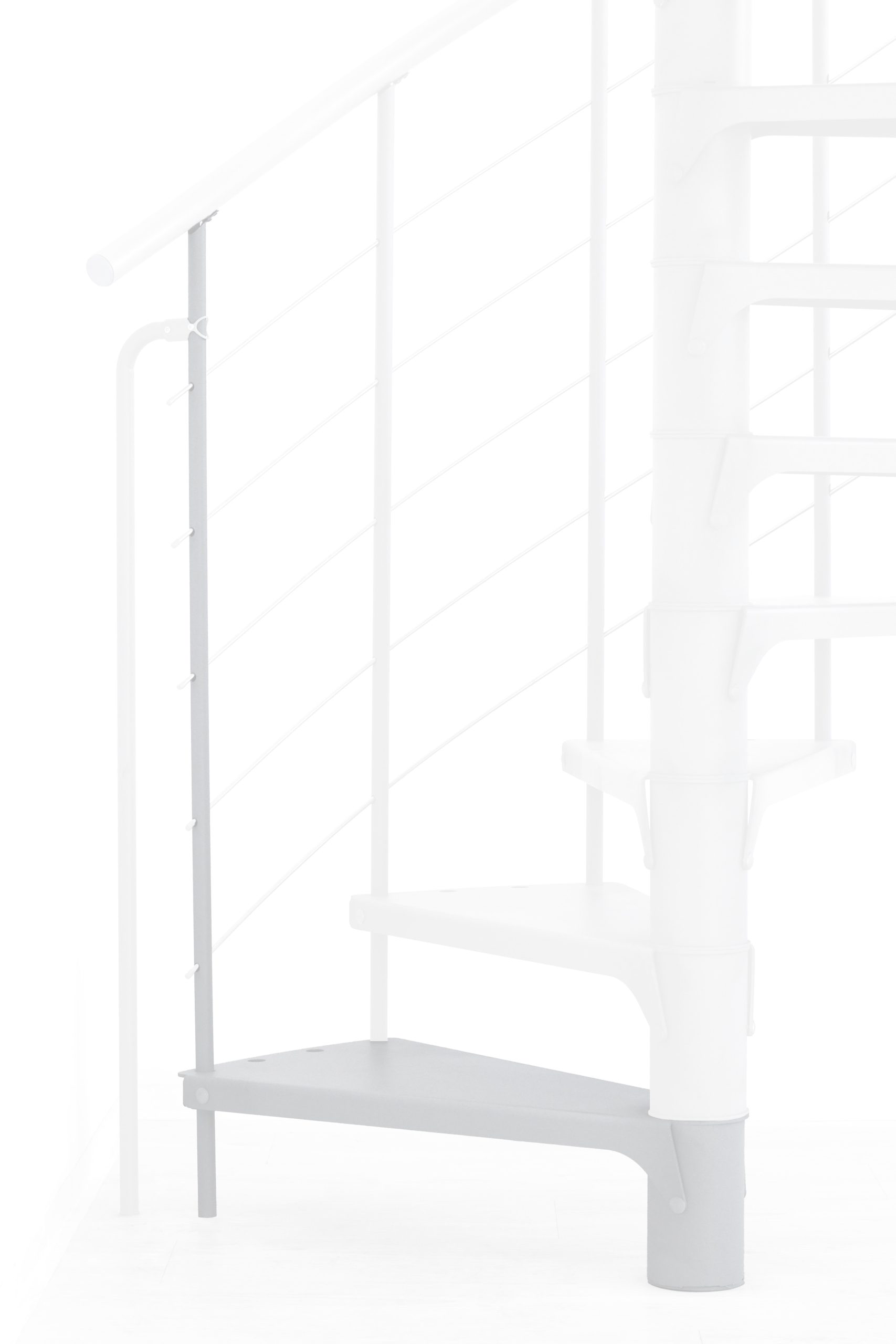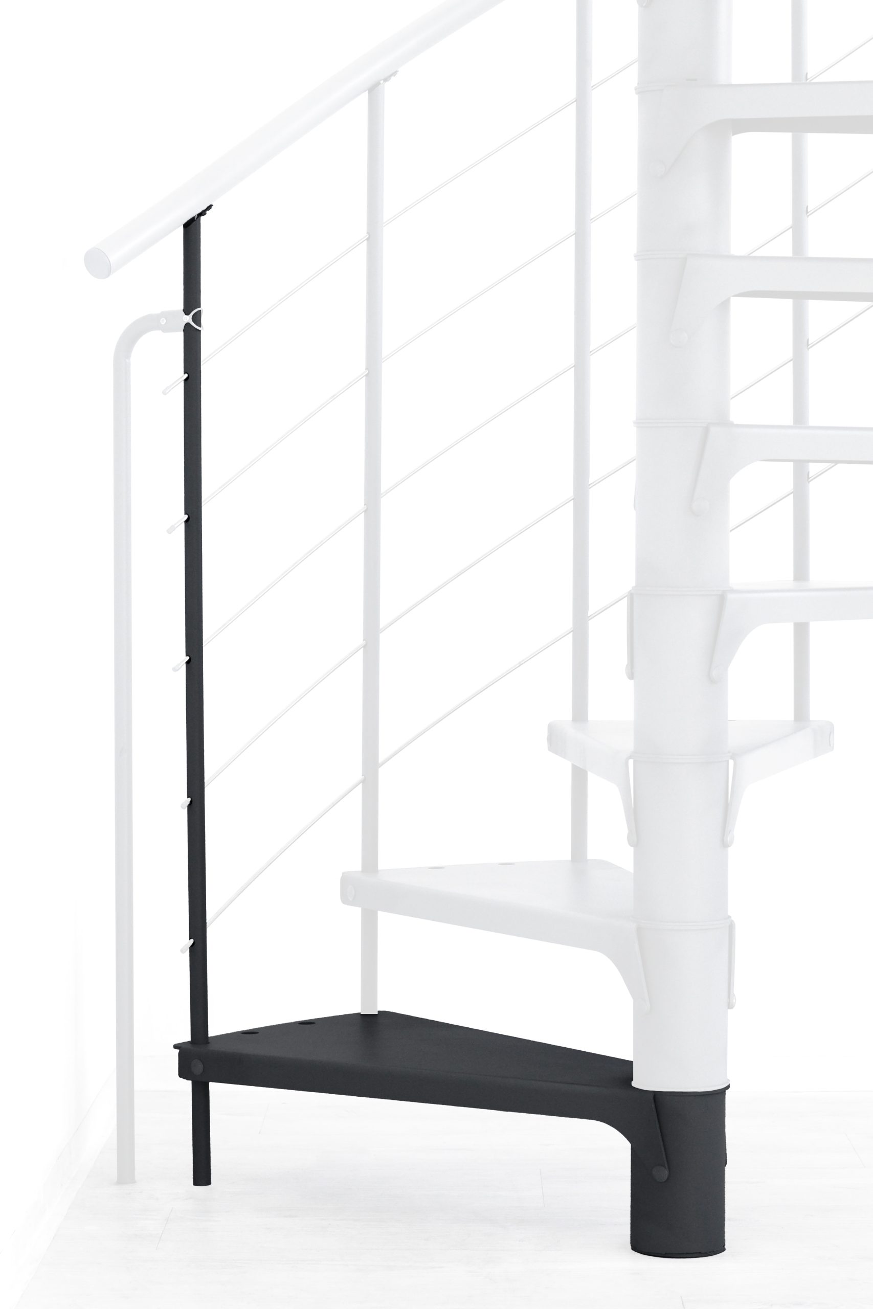 The scope of delivery of the height extension for the spiral staircase Spino Smart includes an additional metal step, a spindle tube and matching railing parts. Just like the staircase, the height extension is available in the colours black, grey and white and in diameters of 120, 140 and 160 cm. When purchasing, please make sure to configure the height extension in the same colour and size as your staircase.