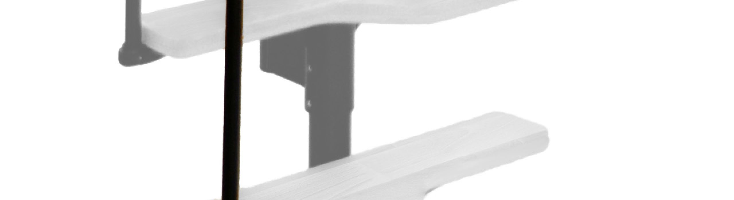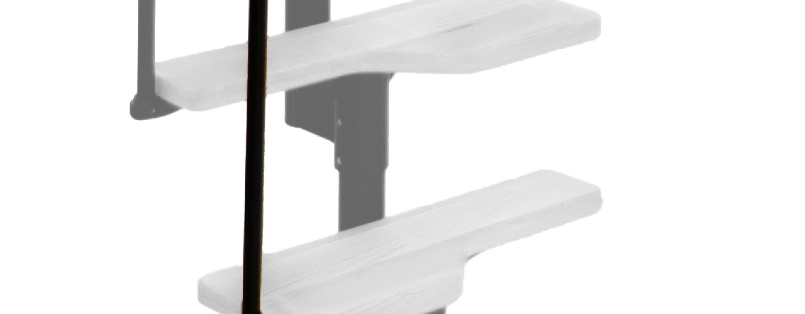 To extend the space-saving staircase Twister upwards a little, you can order a height extension. This includes an additional step, a support element and a railing rod. The step is made of lacquered beech wood, the metal parts can be powder-coated in grey, black or white. Please choose the colour of the height extension to match your staircase.