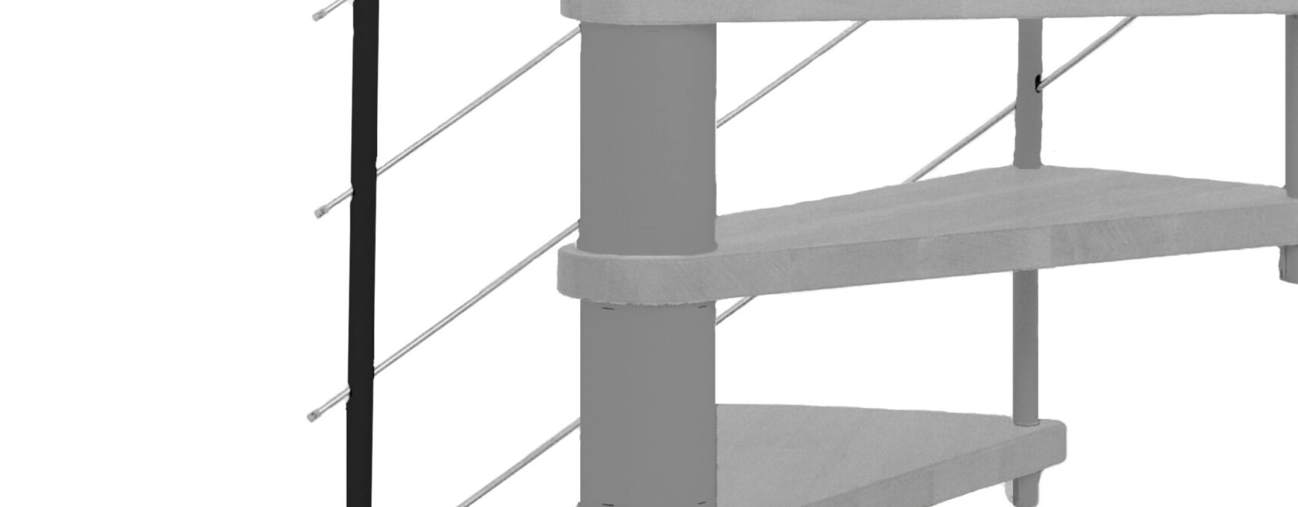If you want to reach floors with a height of more than 305 cm with the spiral staircase Venezia, you need a height extension. The scope of delivery of the height extension includes an additional spindle element, a wooden step and various parts for the railing. All elements can be configured in the same way as the spiral staircase Venezia. When purchasing, please ensure that your staircase and the height extension have exactly the same colours and the same diameter.