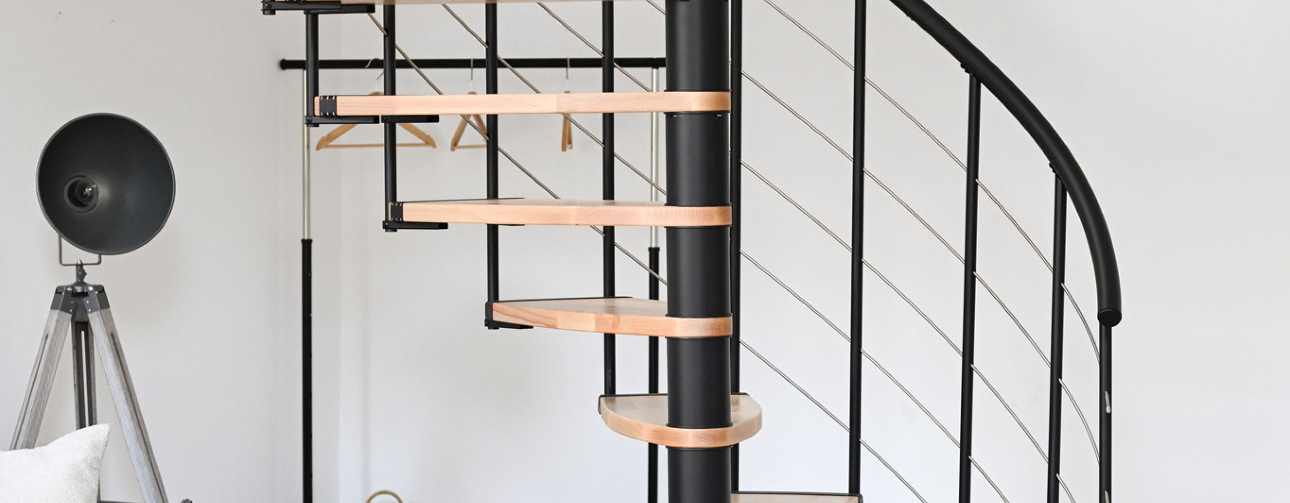 Although the spiral staircase Helios requires little space, it is extremely comfortable to walk on. The steps provide sufficient tread surface and allow you to walk up and down safely. The sturdy banister additionally secures the staircase to the outside.