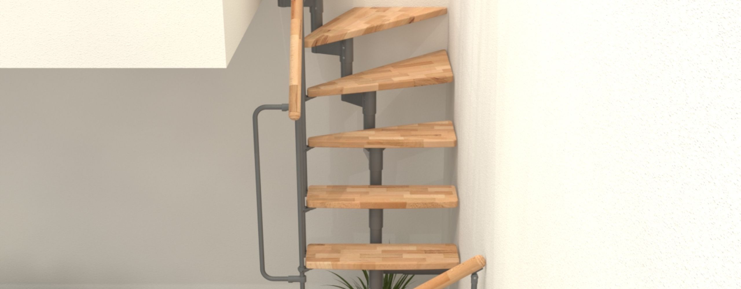 The Joker Turn 180° is a special version of the Joker and Joker Turn space-saving staircases. The distinctive feature of this staircase is that it is supplied with two sets of steps that enable the staircase to be constructed with two 90° turns, making the Joker Turn 180° a semi-spiral staircase.
