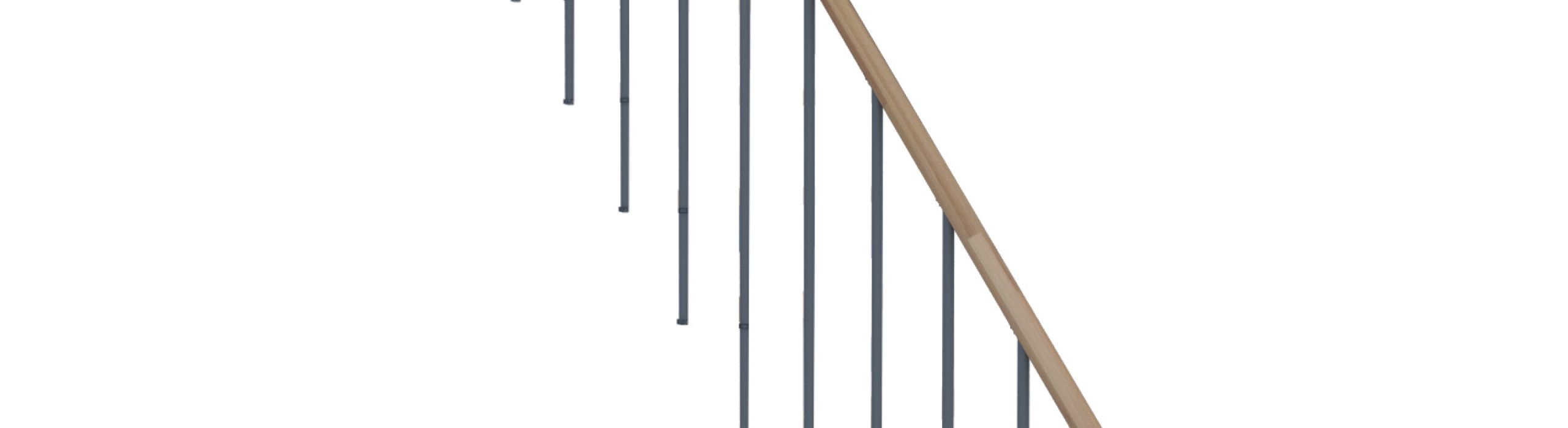 The handrail is made from high-quality wood and is available in beech or walnut, combined with slim metal balusters in white, black, or grey. The clean design and well-balanced material mix create a modern look that fits easily into a wide range of interior styles.