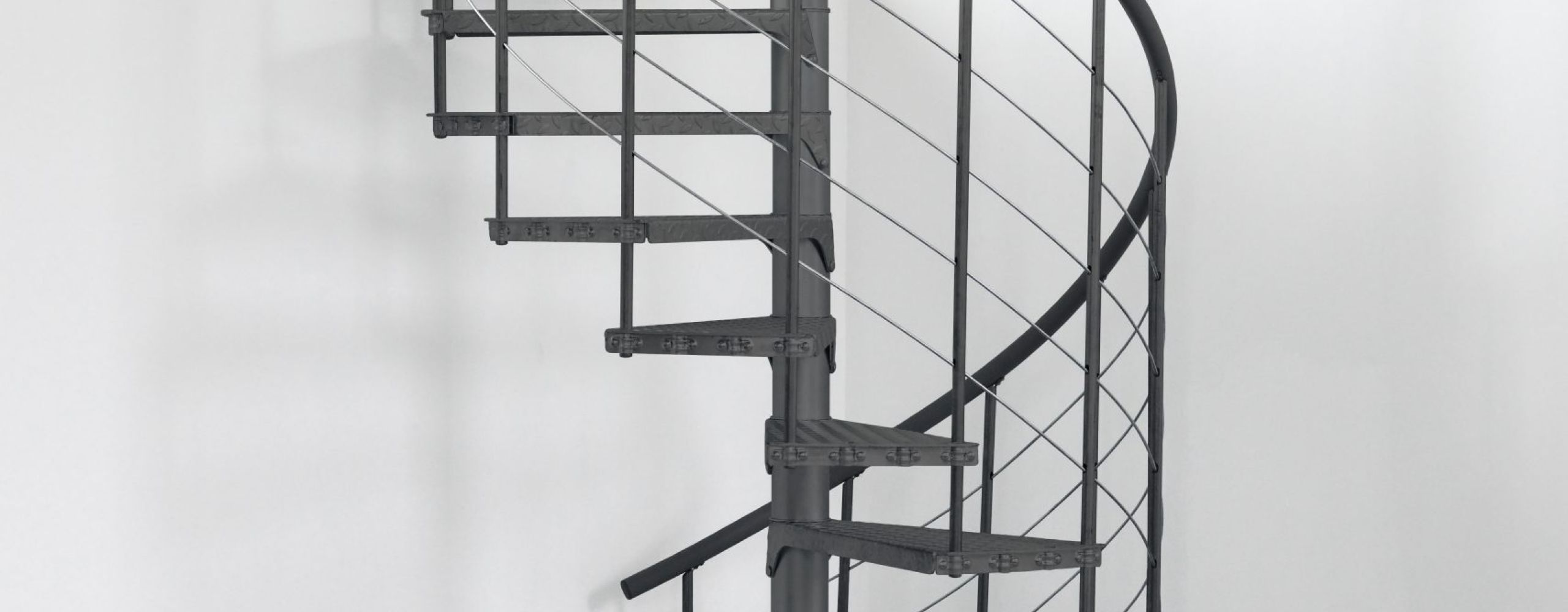 The steel parts of the spiral staircase Spino Zink Color are not only galvanised, but also powder-coated. There are three different colours to choose from: Black, anthracite and white. The PVC handrail comes in the matching colours and the bottom rails are made of stainless steel. Depending on how much space is available outside, diameters of 120, 140, 160 or 180 cm are available.