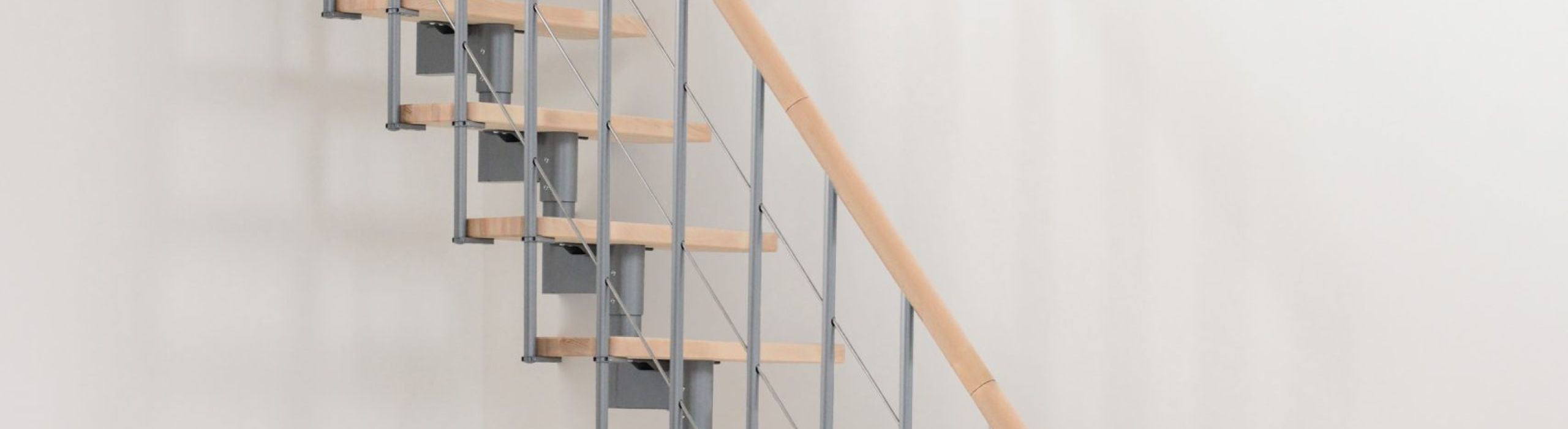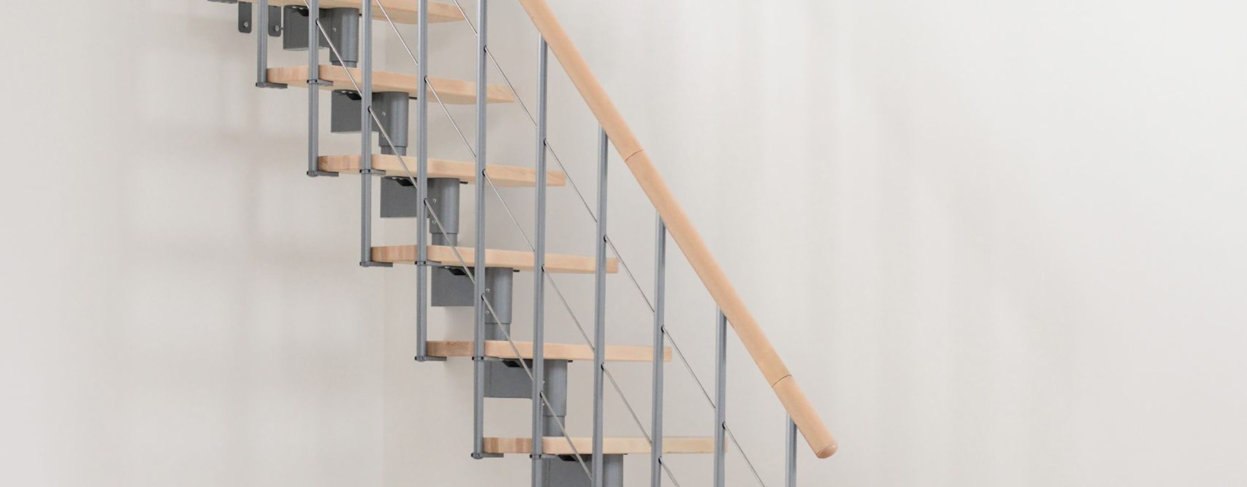 The straight space-saving staircase Style impresses with its high-quality steps and matching banister made of solid wood. These not only feel pleasant, but also ensure a safe ascent and descent. Together with the steel elements and the banister with stainless steel bottom rails, the result is a modern and sleek look that complements any interior design style.
