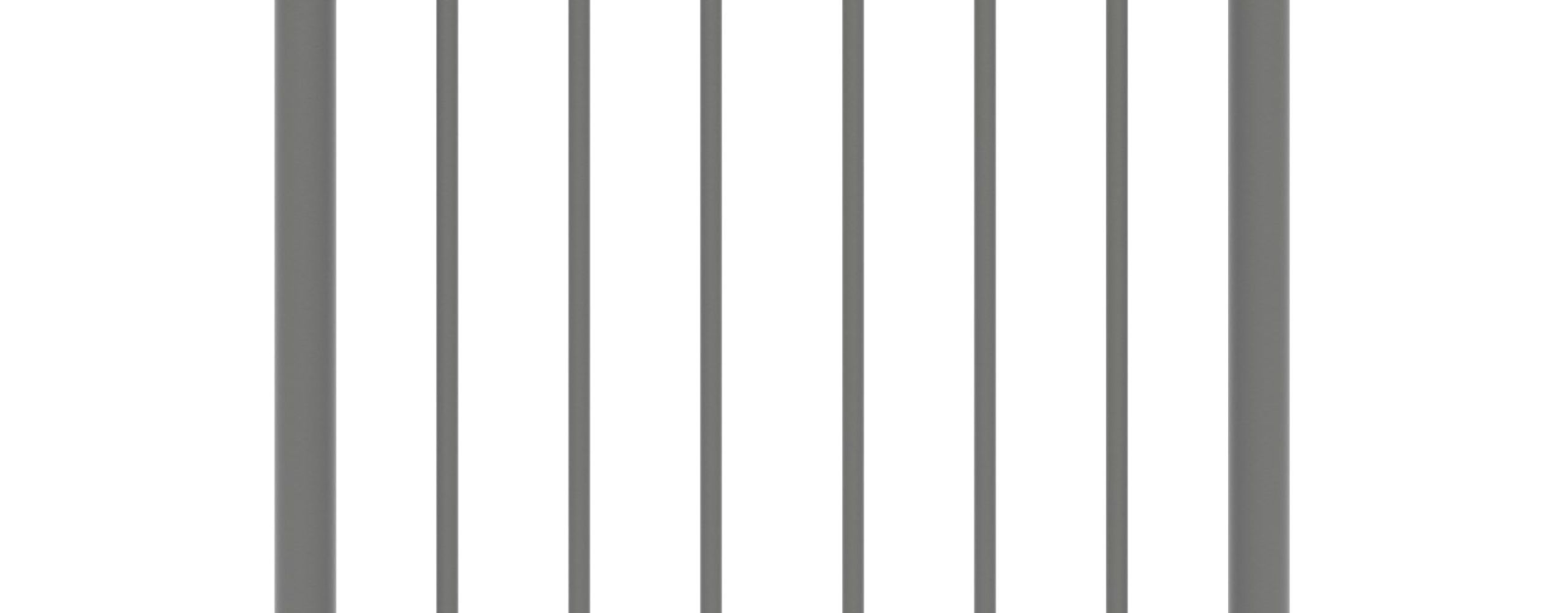 - Vertikale Geländerstäbe pulverbeschichtet in Grau, Schwarz oder Weiß