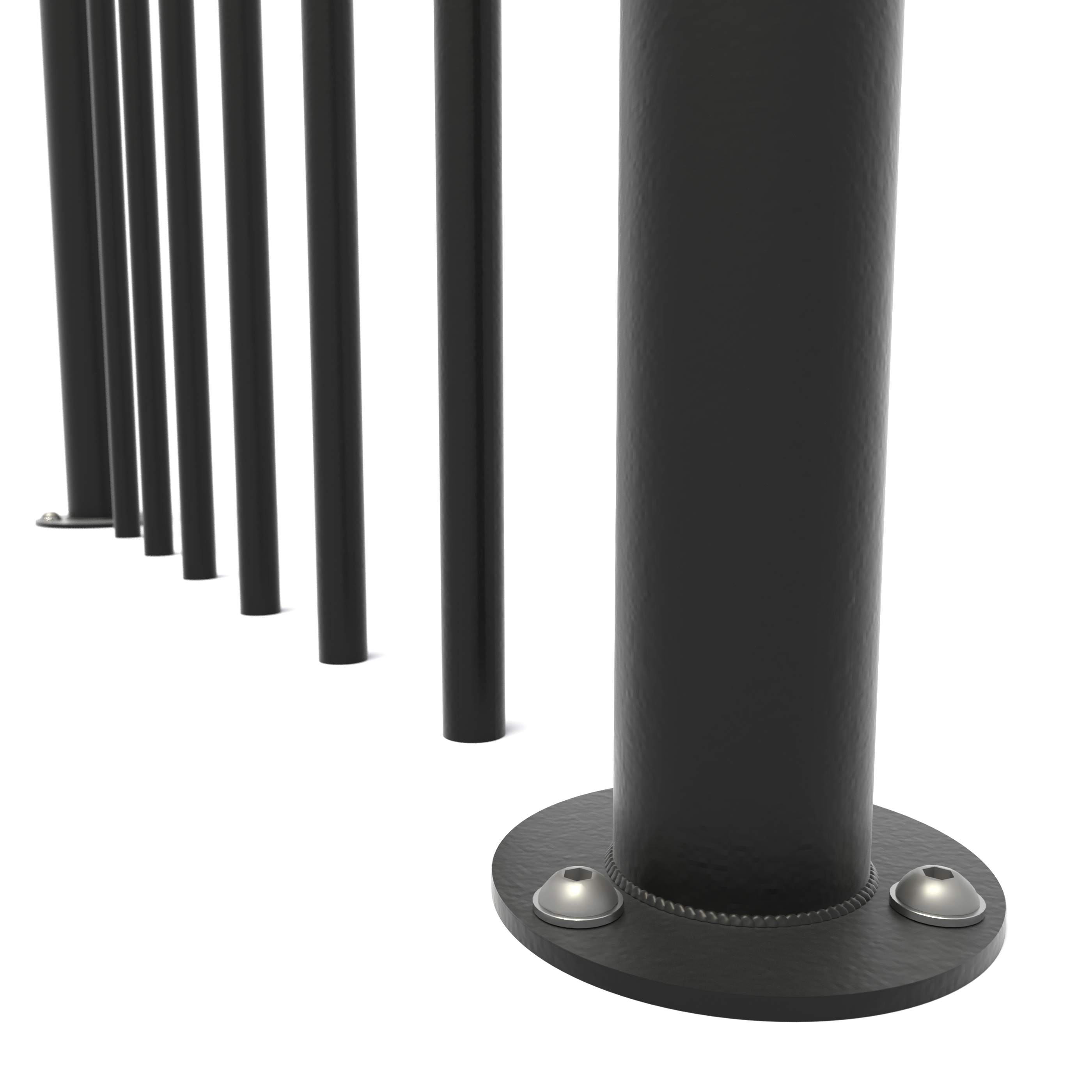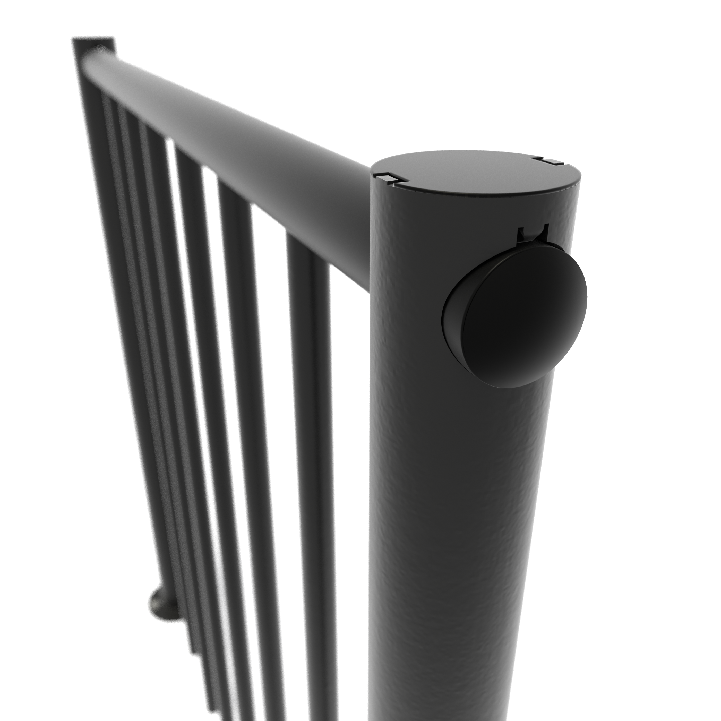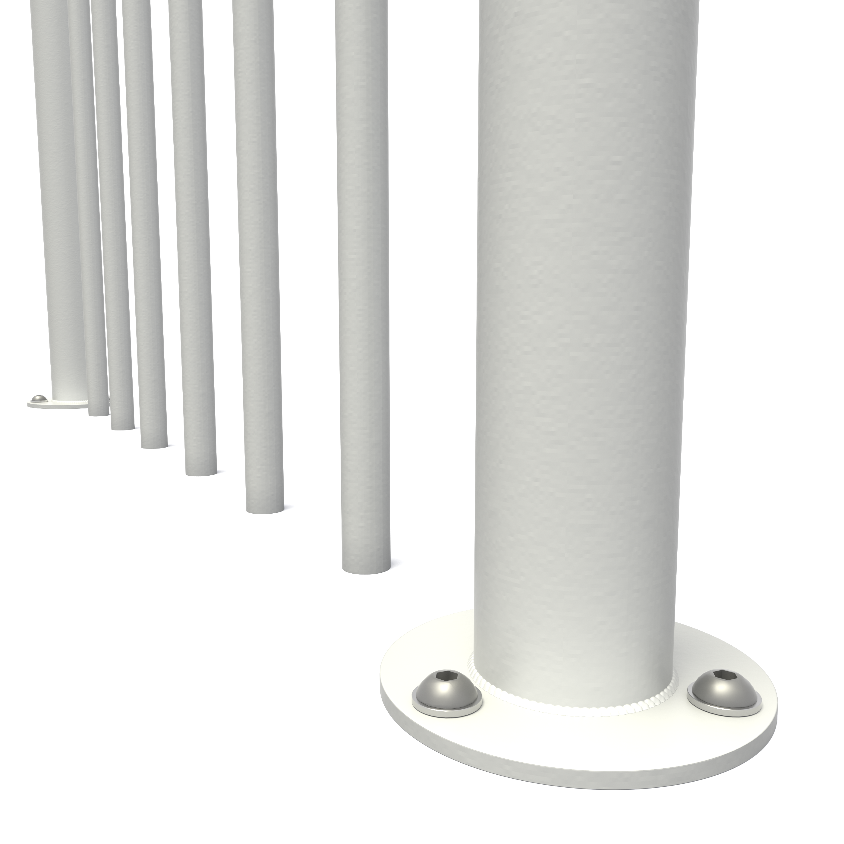 Das Brüstungsgeländer zur Rondo Zink Color ist wie die Außentreppe komplett wetterfest und somit für die Benutzung im Freien geeignet. Die Metallteile des Geländers werden zuerst verzinkt und anschließend mit einer Pulverbeschichtung überzogen. Passend zur Treppe stehen hier die Farboptionen Schwarz, Anthrazit und Weiß zur Auswahl. Der Handlauf aus PVC ist in der selben Farbe gehalten und lässt sich leicht biegen. Dadurch können Sie dieses Brüstungsgeländer sowohl gerade als auch mit einem runden Verlauf aufbauen.