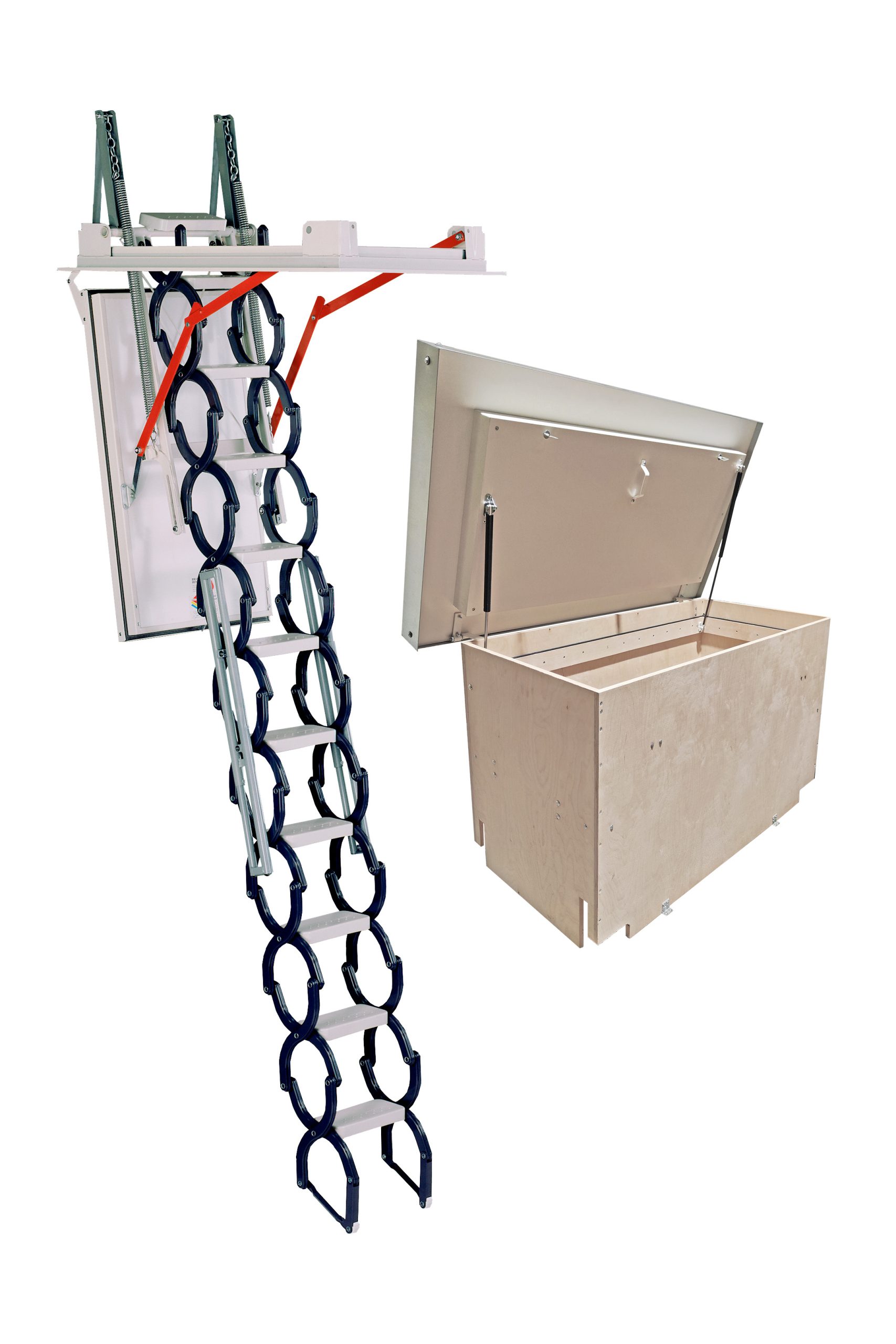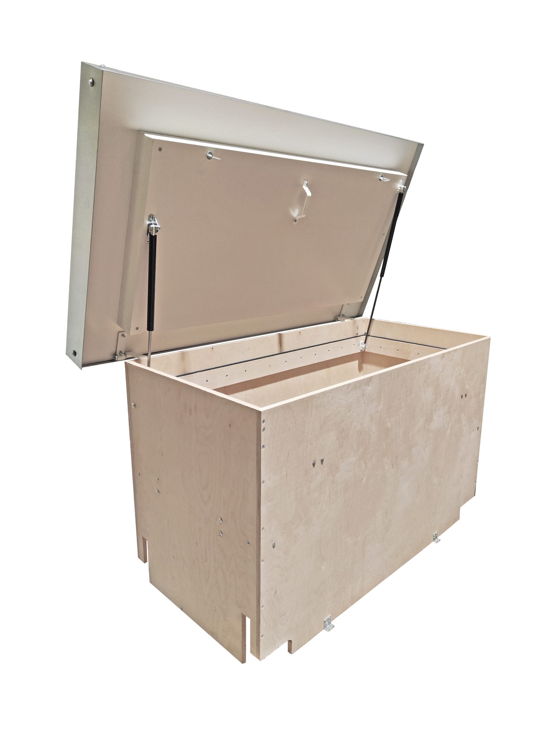 Der hochwertige Futterkasten besteht aus robusten Sperrholzplatten mit einer Stärke von 18 mm und bietet eine sichere Verankerung der Treppe in der Decke.