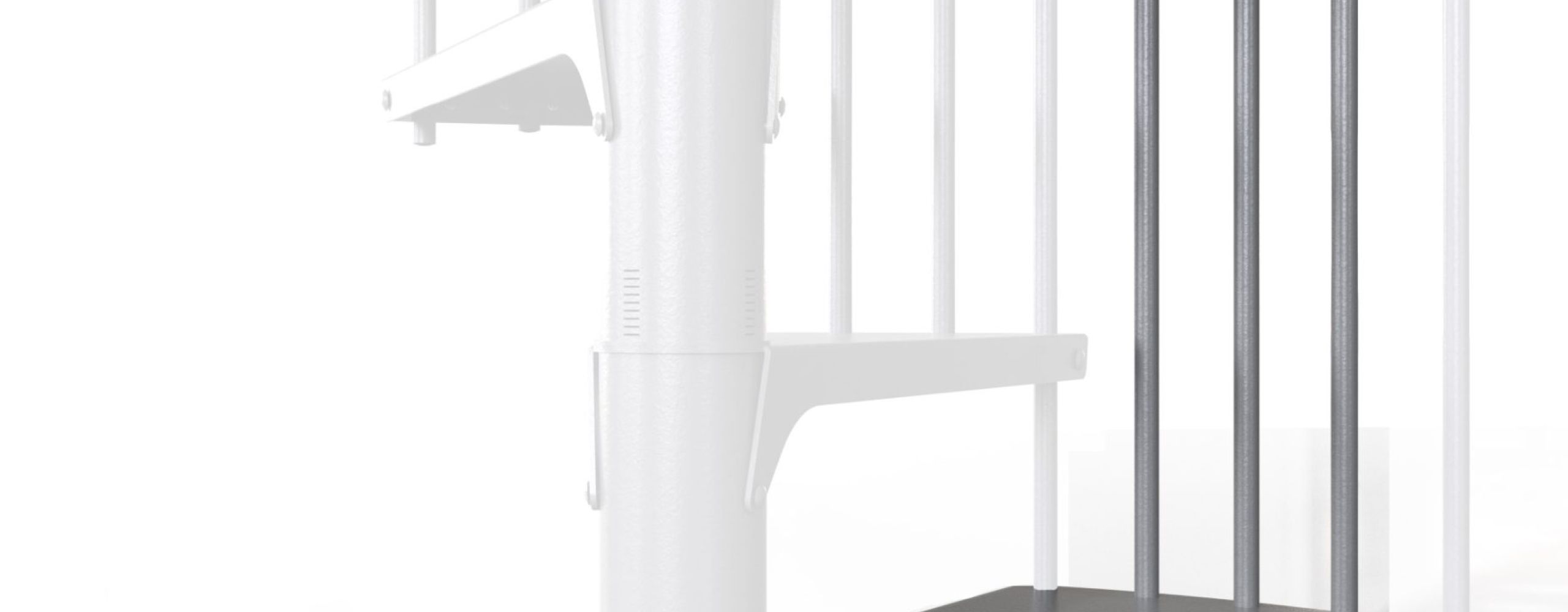 Die Höhenerweiterung für die Metallspindeltreppe Rondo Smart besteht aus einer Metallstufe, einem Spindelelement und zusätzlichen Geländerstäben. Diese Bestandteile können in Schwarz, Grau oder Weiß pulverbeschichtet sein. Die Zusatzstufe ist in drei Größen – passend zu den Durchmesser 120, 140 und 160 cm – erhältlich. Achten Sie beim Konfigurieren bitte darauf, dass die Farbe und Größe der Höhenerweiterung jener Ihrer Treppe entspricht.