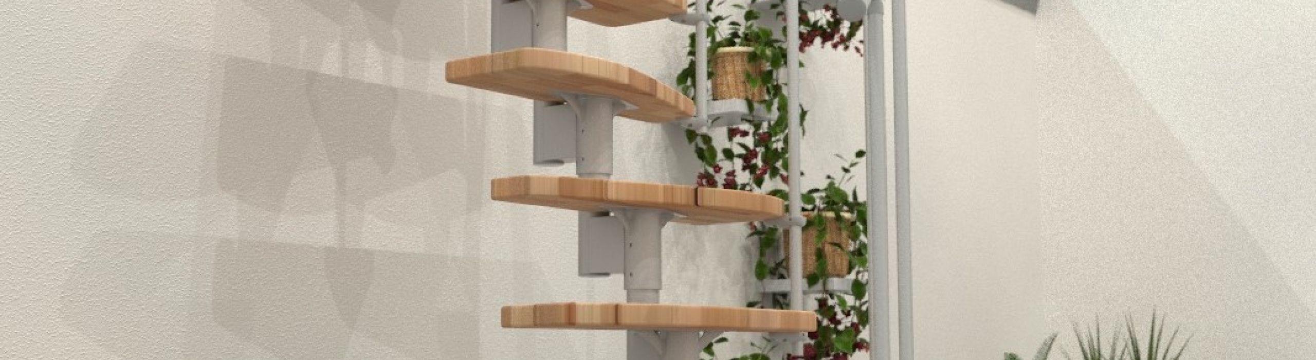 Dank des flexiblen Grundgerüsts und des Handlaufs aus PVC lässt sich die Monte Carlo nicht nur gerade, sondern auch leicht nach links oder rechts gedreht montieren. Dadurch können Sie noch mehr Platz einsparen und kommen dennoch sicher in die nächste Etage.
