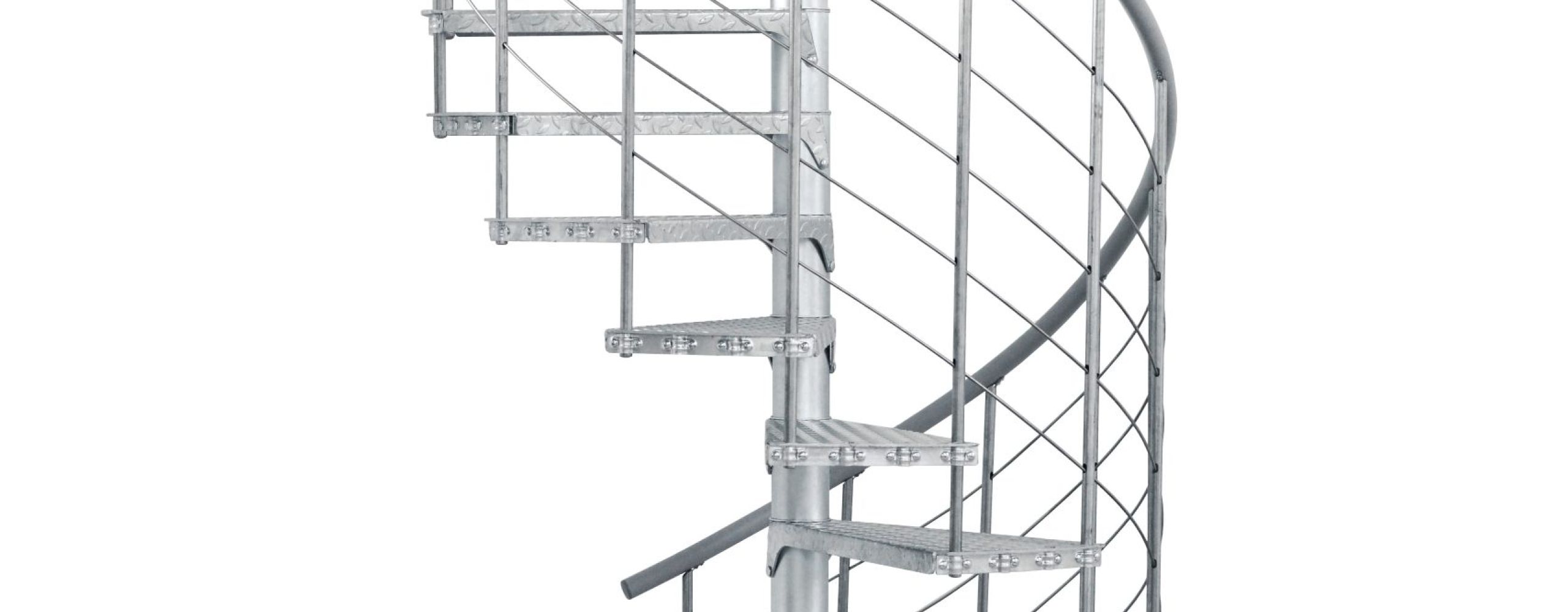 Die Außentreppe Spino Zink Smart ist in vier verschiedenen Durchmessern verfügbar. Hier können Sie – je nachdem wie viel Platz bei Ihnen verfügbar ist – zwischen 120, 140 160 und 180 cm wählen. Die maximale Geschoßhöhe dieser Außentreppe liegt bei knapp über drei Metern. Für niedrigere Etagen ist die Spino Zink Smart aber ebenfalls geeignet. Lassen Sie dazu einfach einzelne Stufen weg oder passen Sie die Steigung pro Stufe individuell an.