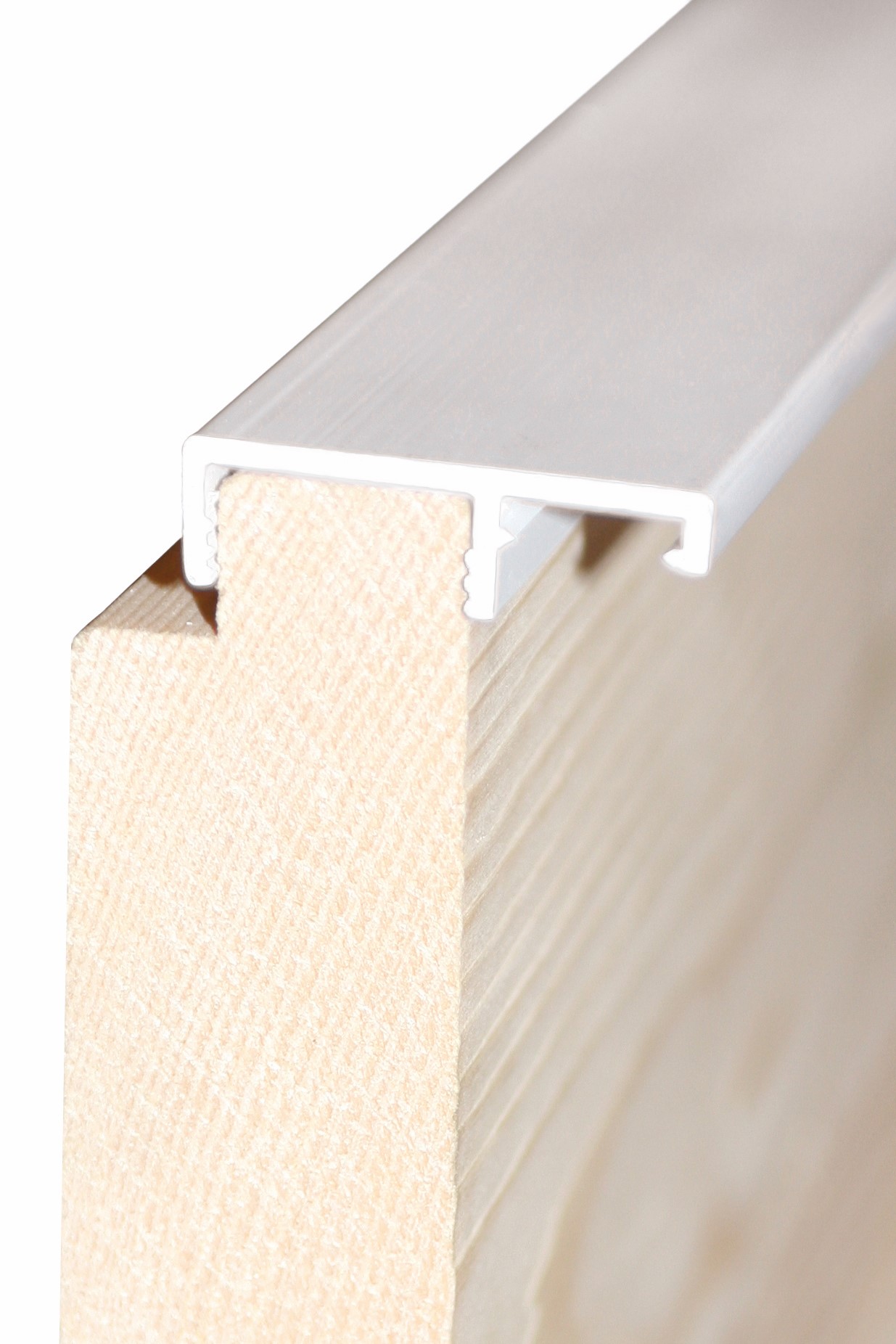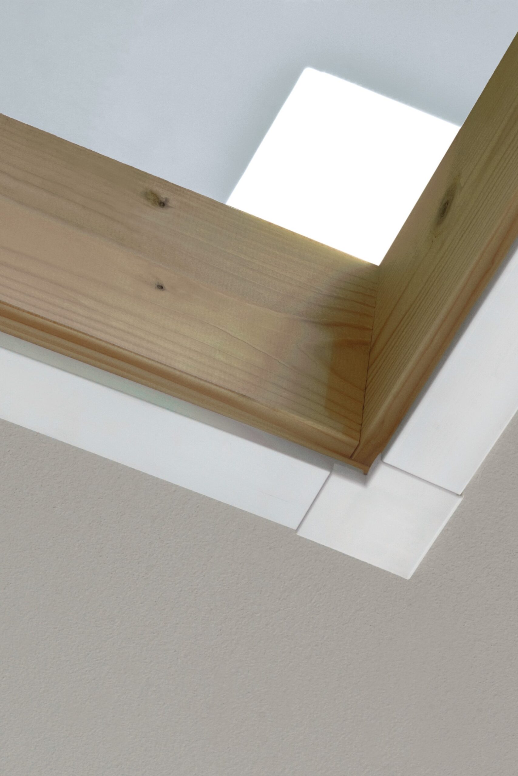 Standardmäßig werden 4,20 m der Verkleidungsleiste geliefert – je nach der Größe Ihrer Deckenöffnung können Sie die Leiste aus PVC aber ganz einfach passend zuschneiden. Anschließend brauchen Sie die Teile und die Winkelelemente nur noch auf den Holzrahmen der Treppe stecken und schon haben Sie einen schönen Deckenabschluss in schlichtem Weiß erreicht.